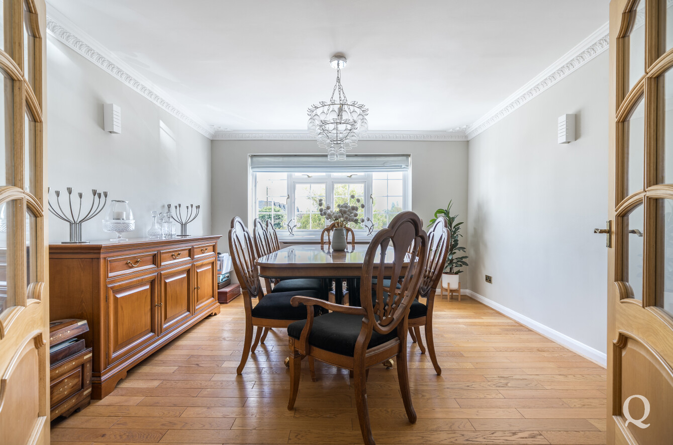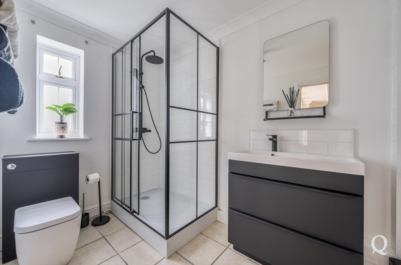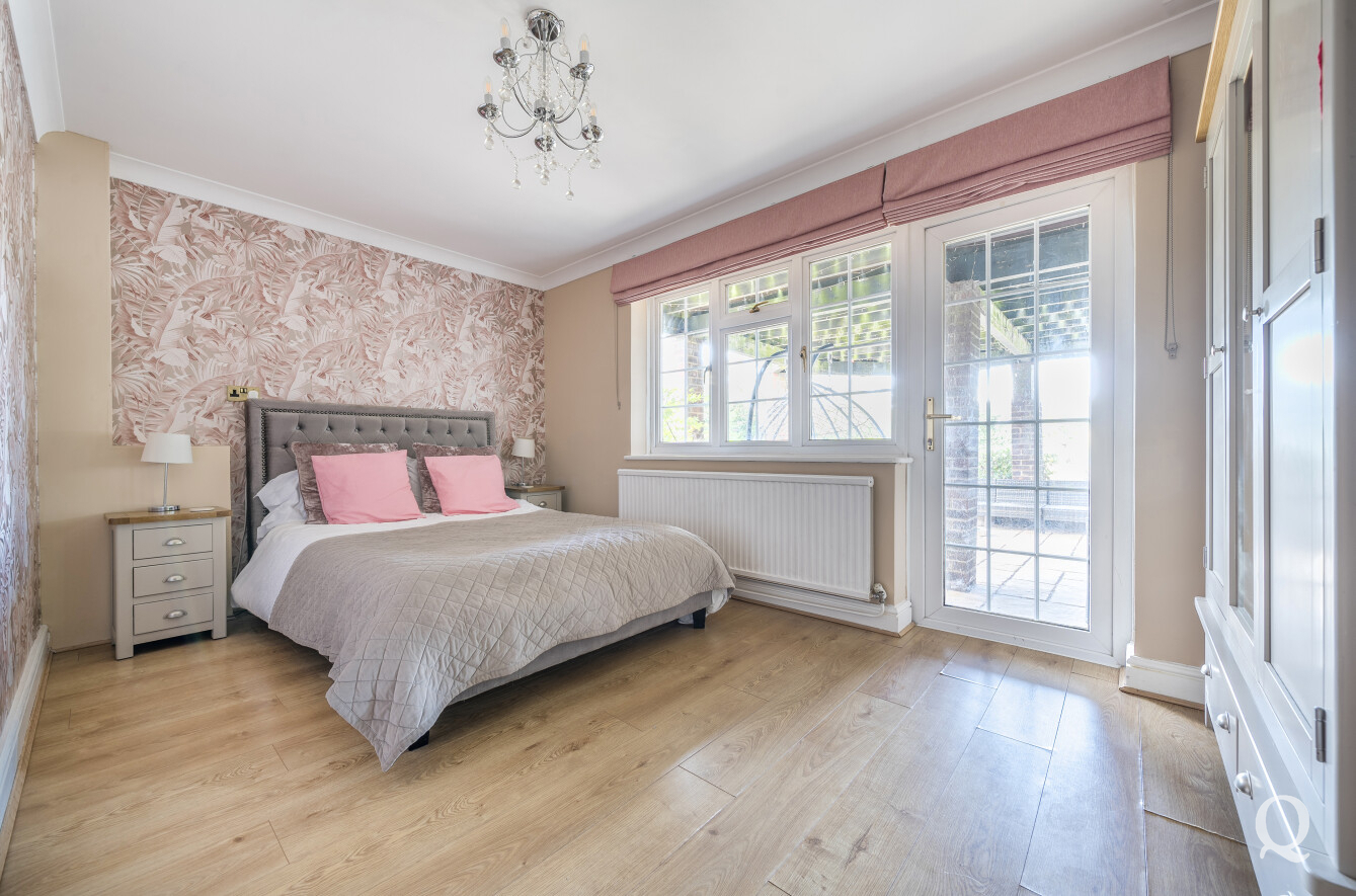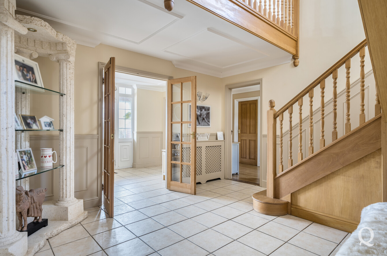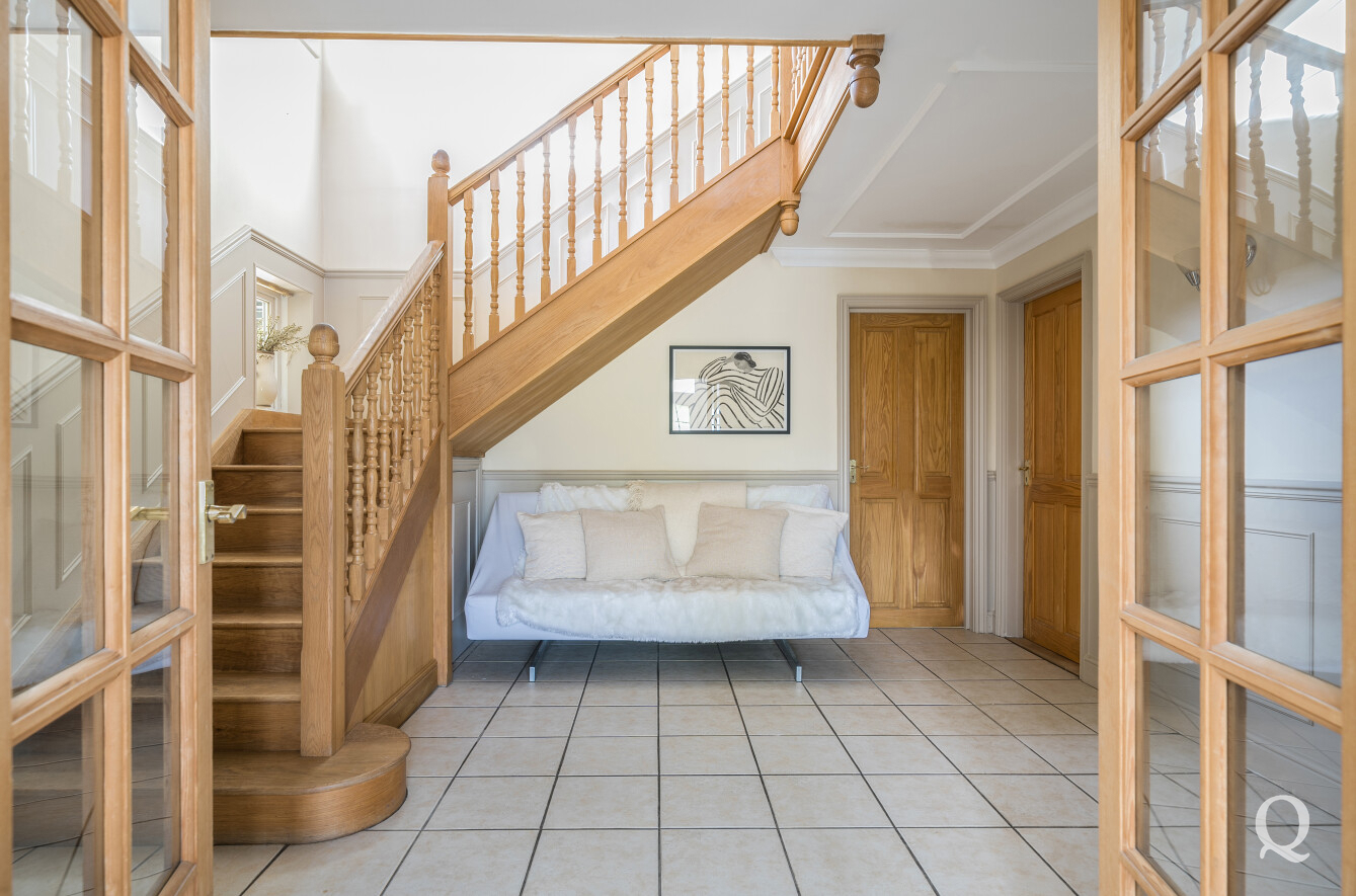 This floor also houses three of the property’s five principal bedrooms. The principal bedroom is a peaceful retreat, generously sized and beautifully presented. A second large double bedroom provides excellent accommodation for family or guests, while a fifth bedroom offers versatility as a nursery, dressing room, or study. A stylish family bathroom, fitted with both bath and separate shower, completes the first floor.