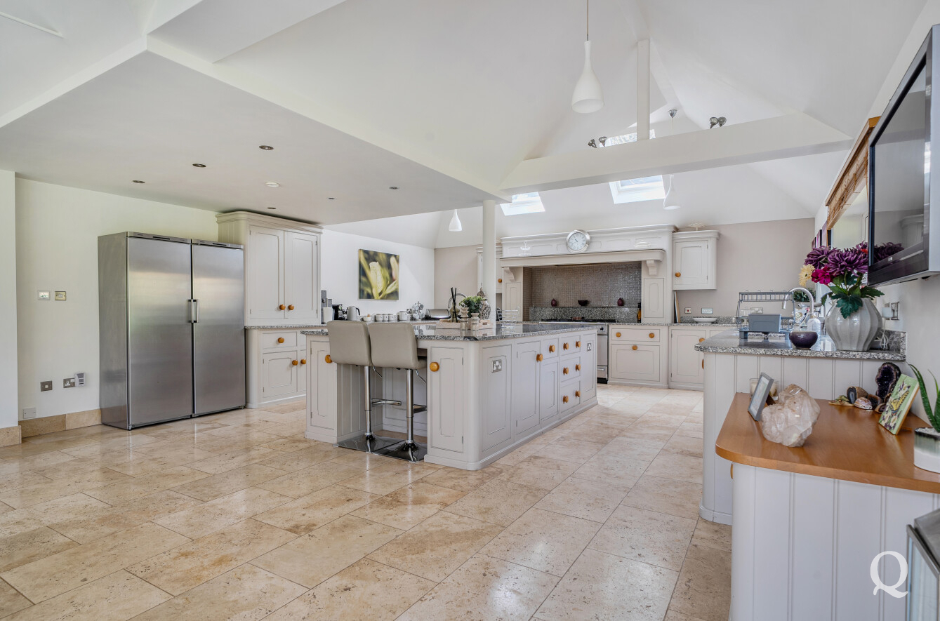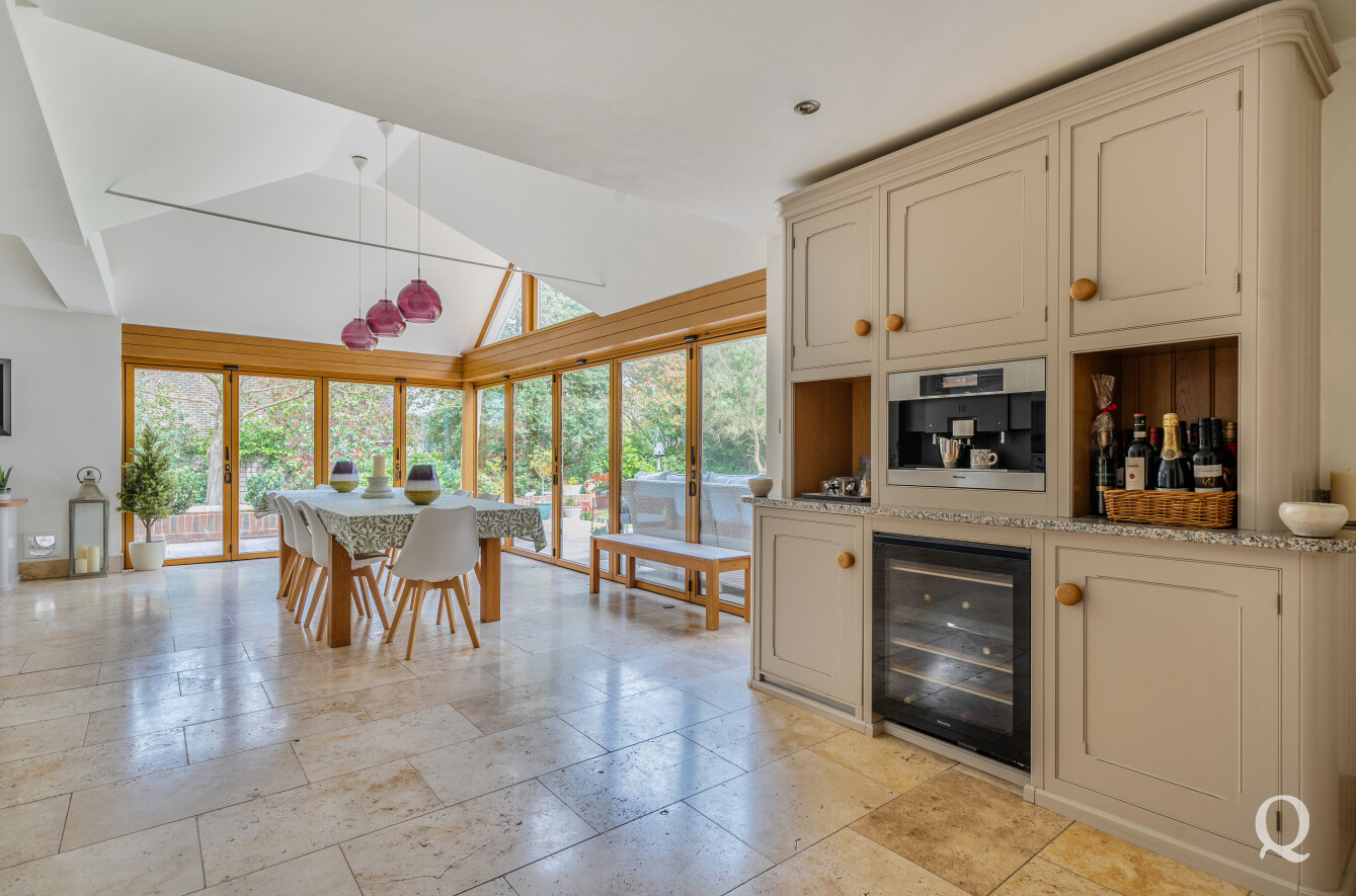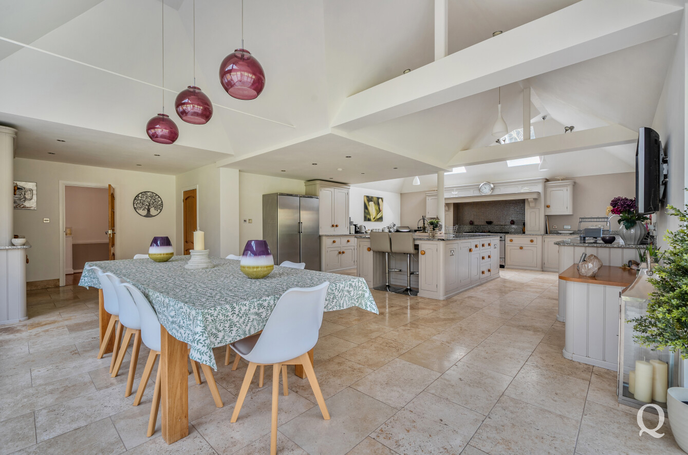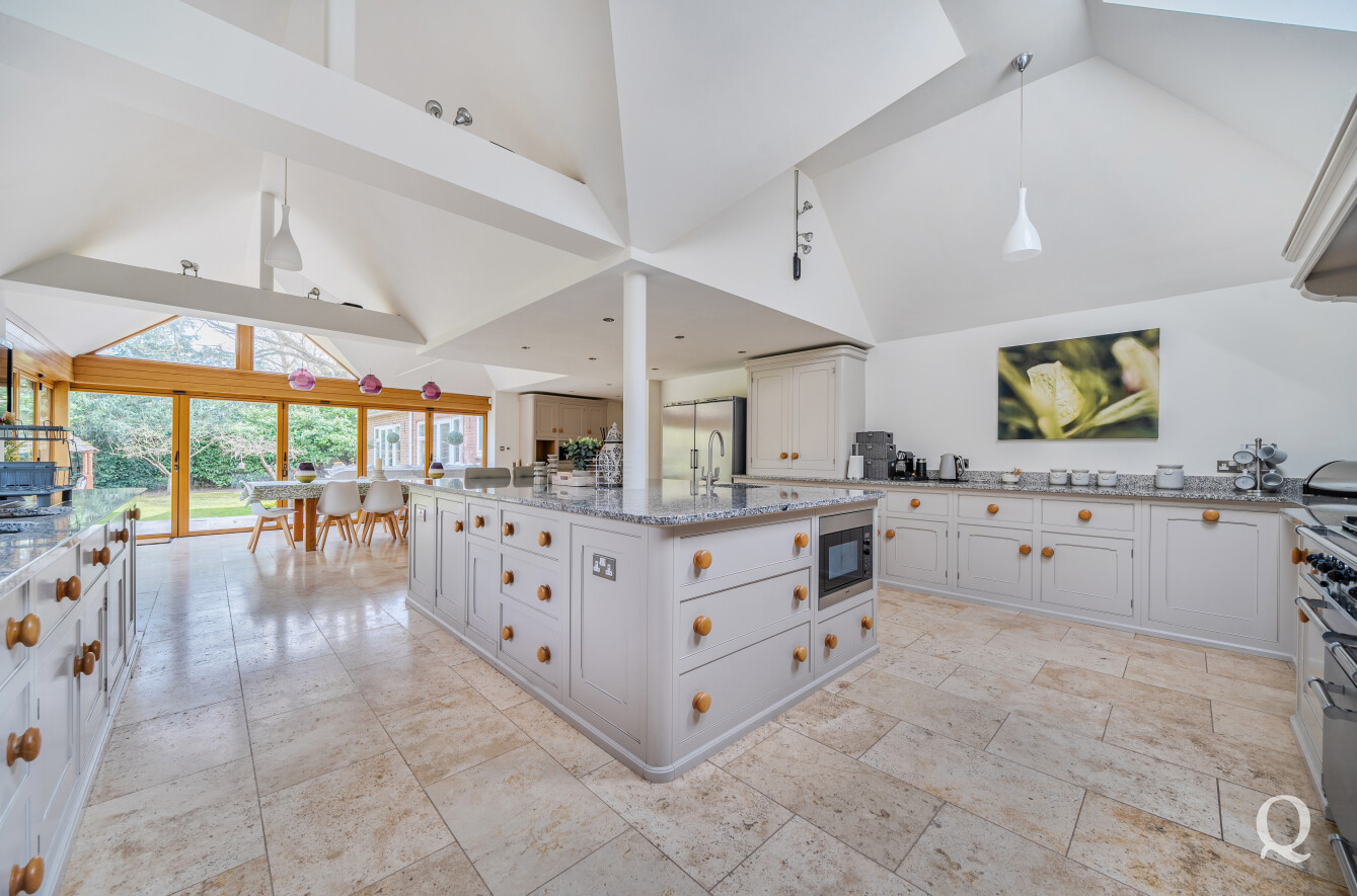 At the heart of the home is a stunning Mark Wilkinson kitchen, thoughtfully designed and finished to an exceptional standard. It features high-quality Miele appliances, elegant granite worktops and a large central island, creating a superb space for cooking, dining and socialising. This opens seamlessly into a bright and airy family and breakfast area, forming a true hub of the home. A separate utility room adds further practicality.
