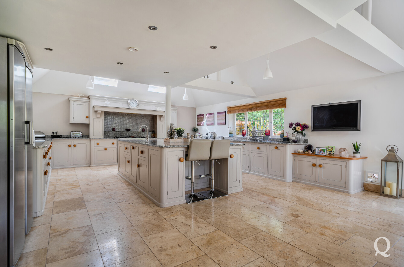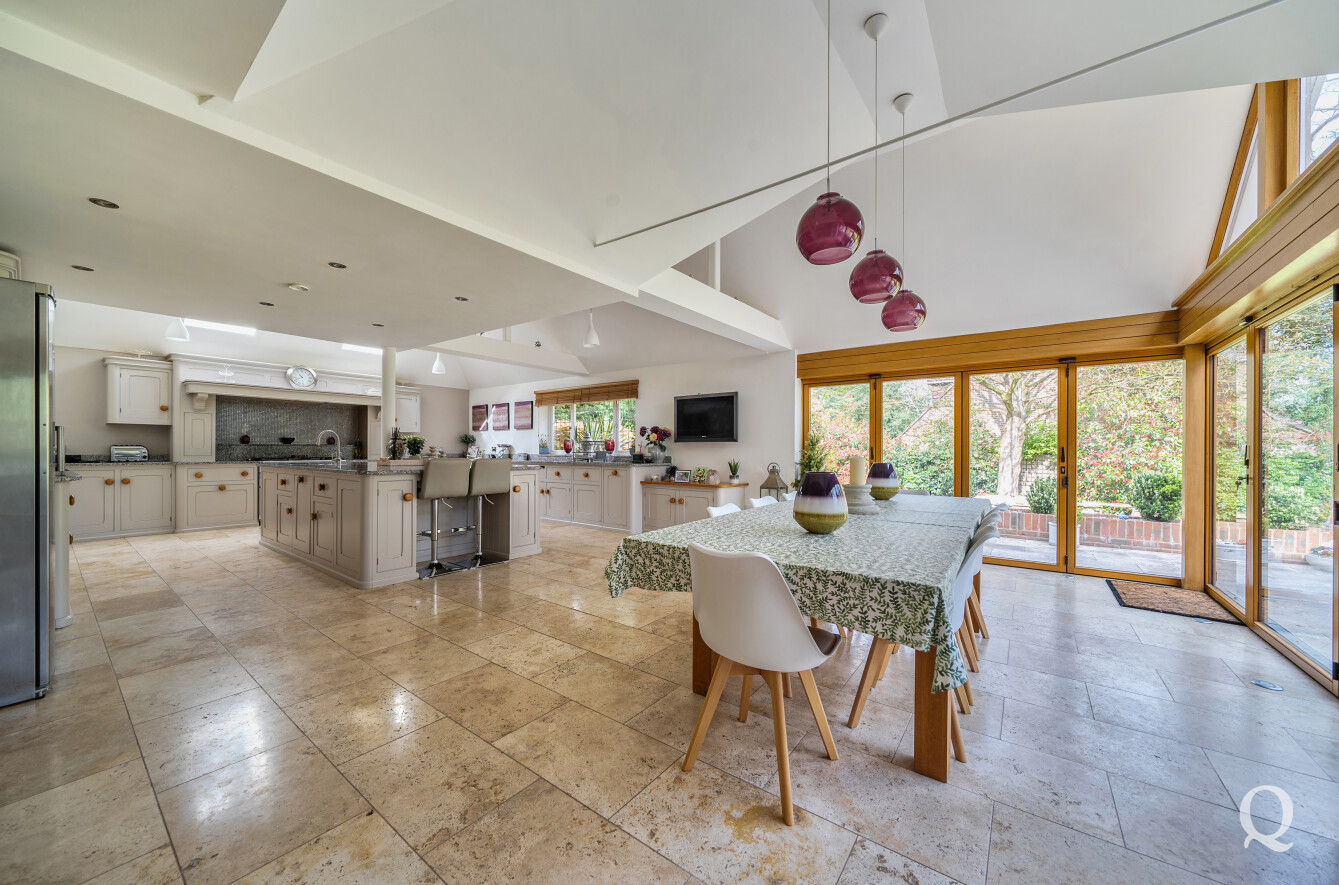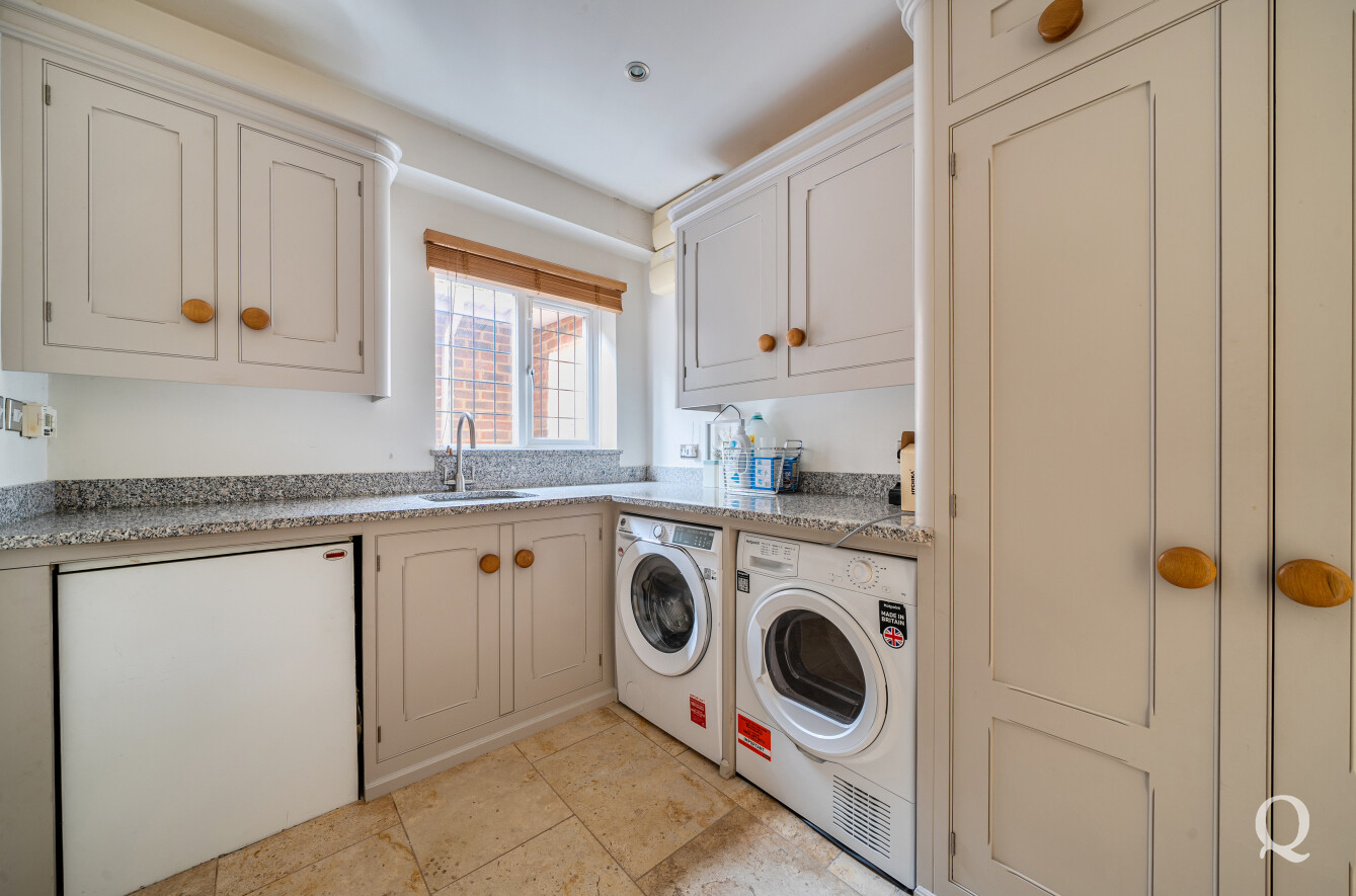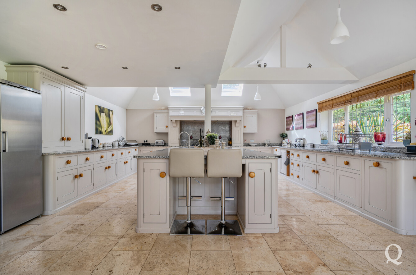 At the heart of the home is a stunning Mark Wilkinson kitchen, thoughtfully designed and finished to an exceptional standard. It features high-quality Miele appliances, elegant granite worktops and a large central island, creating a superb space for cooking, dining and socialising. This opens seamlessly into a bright and airy family and breakfast area, forming a true hub of the home. A separate utility room adds further practicality.