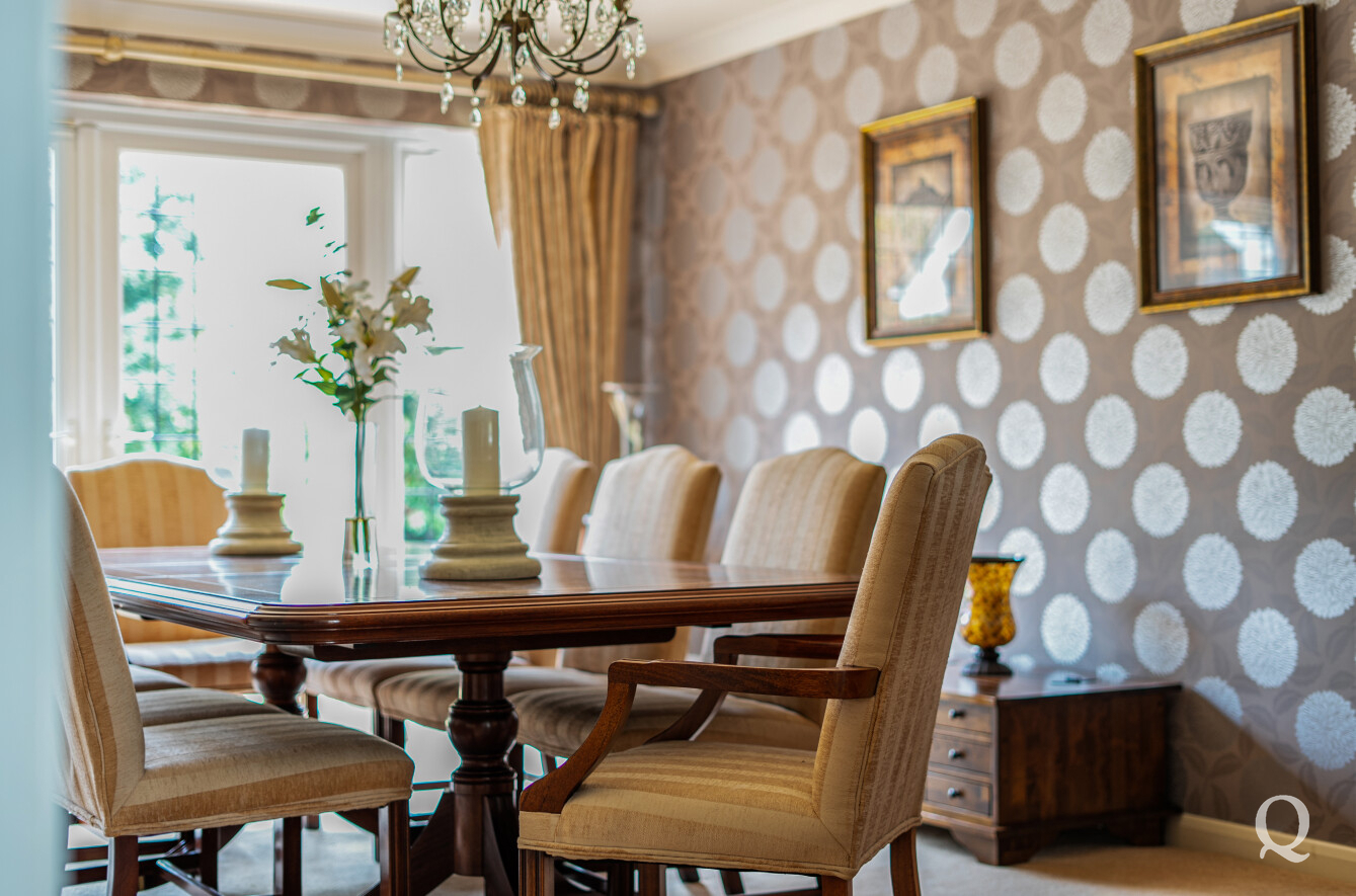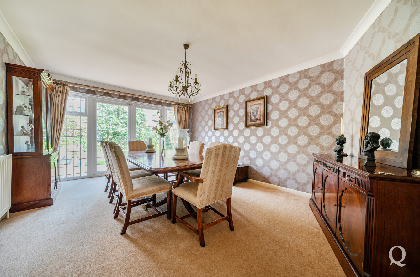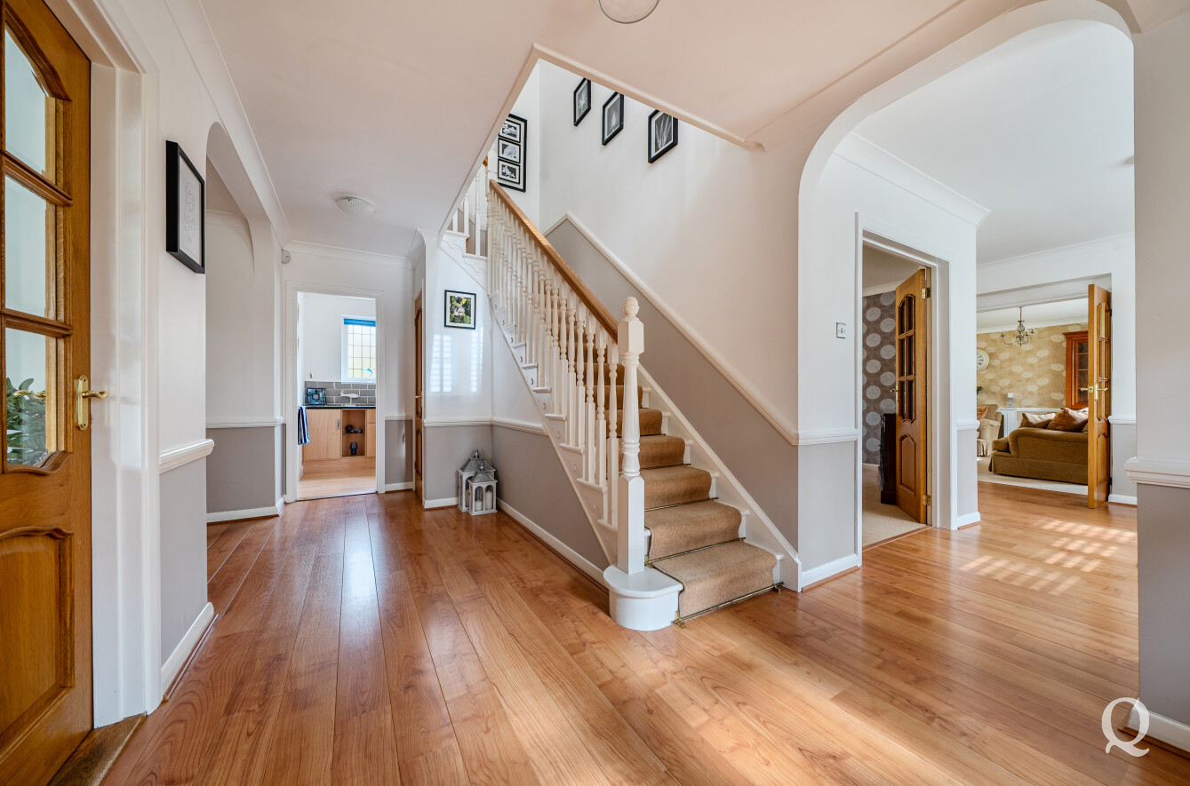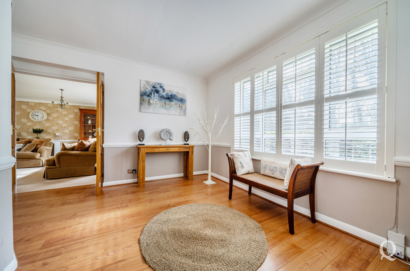 The property is approached via a welcoming entrance hall that leads through to a selection of beautifully arranged reception spaces, including a formal dining room, a spacious reception room and a separate family room, all providing an ideal setting for both entertaining and everyday life. A dedicated study offers a quiet retreat for home working.