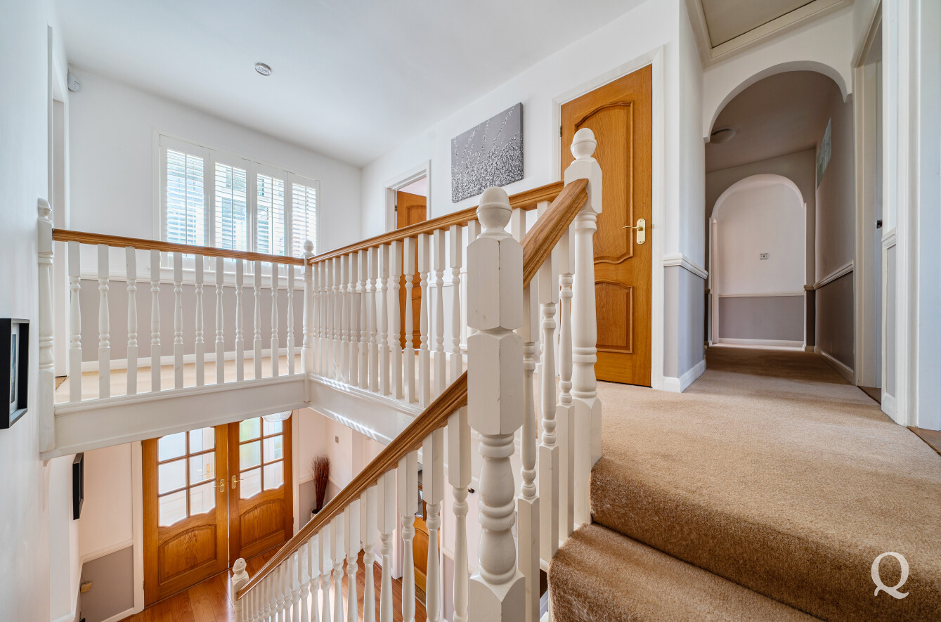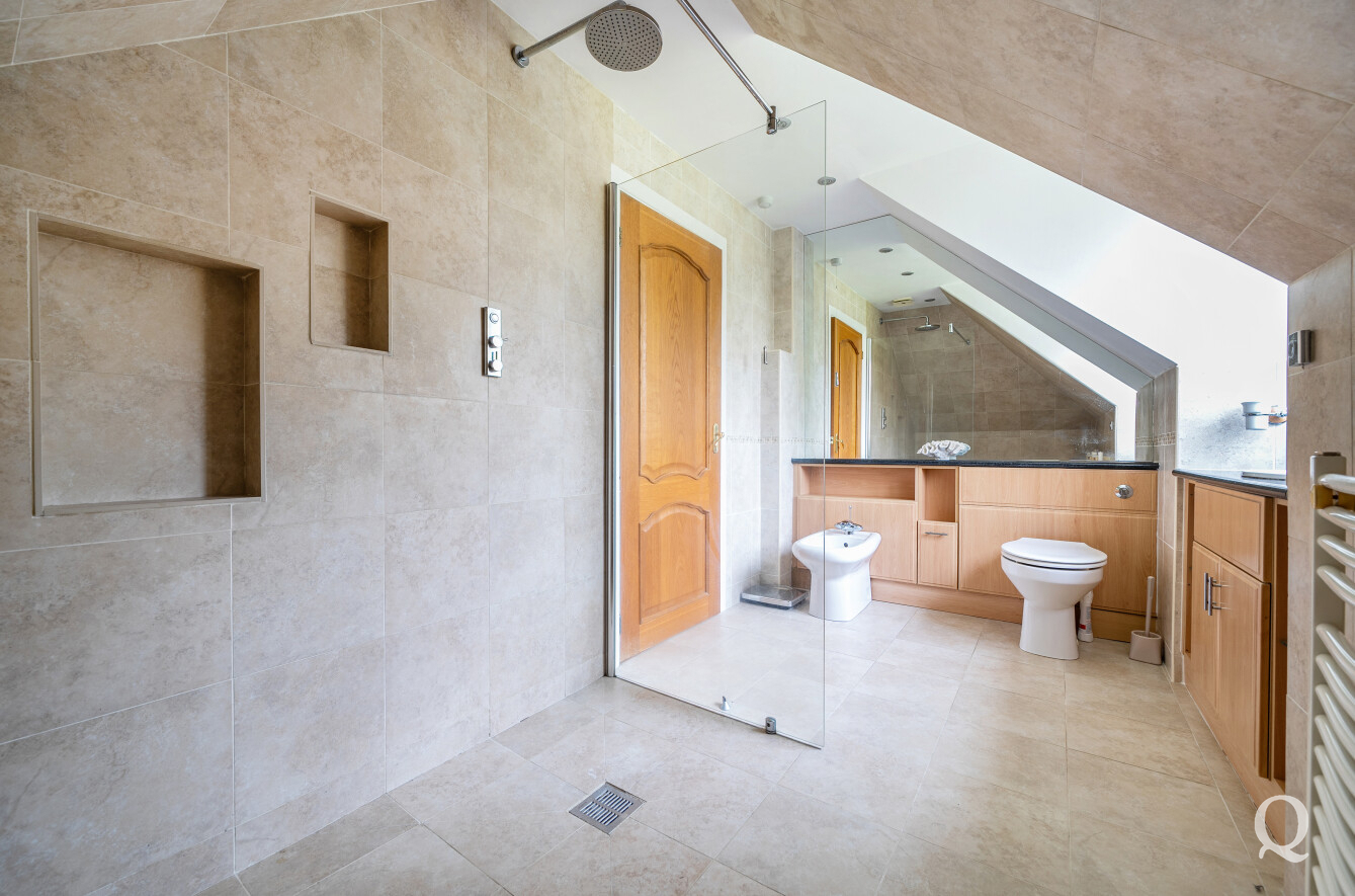 Upstairs, the property continues to impress with five well-proportioned bedrooms. The principal bedroom is a particularly luxurious space, benefitting from a dressing room and a stylish ensuite shower room with WC. The remaining bedrooms are served by well-appointed bathroom facilities, providing comfort and convenience for family and guests alike.