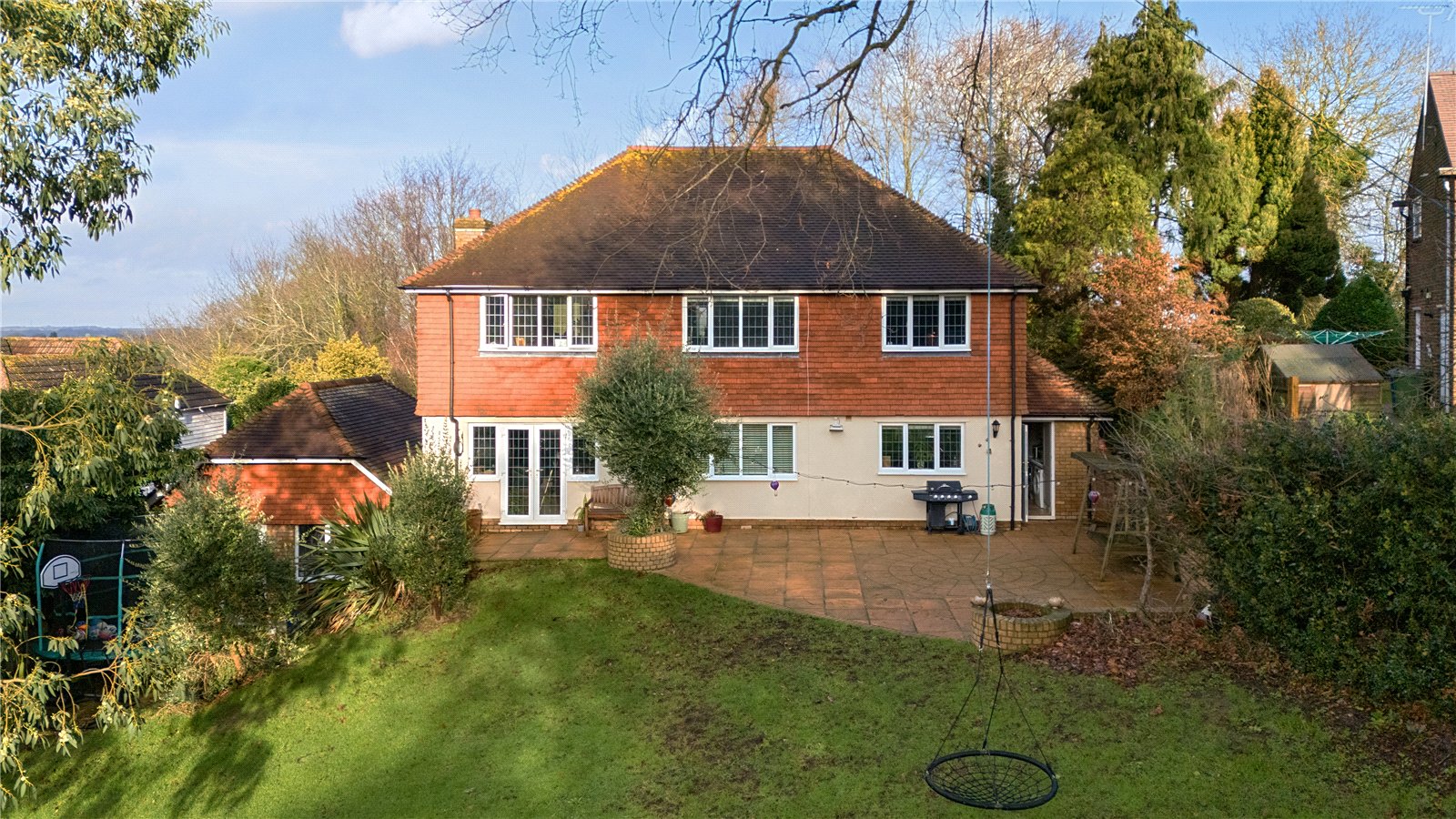 Set within one of Rodmersham’s most sought-after semi-rural locations, this particularly large and beautifully presented detached home offers outstanding family accommodation, generous living space and a wonderful sense of privacy, all while remaining within easy reach of Sittingbourne and its excellent amenities. With impressive, far reaching views, the property occupies an impressive plot and is approached via a substantial driveway providing ample off-road parking for multiple vehicles in addition to a double garage. Internally, the accommodation is well balanced and thoughtfully arranged, offering a combination of spacious reception rooms ideal for entertaining and everyday family life, alongside a well-appointed kitchen and further versatile ground floor space suitable for a study, gym or home office. Upstairs, the bedroom accommodation is equally impressive, with multiple well-proportioned rooms and modern bathroom facilities, making the house perfectly suited to larger or growing families. One of the standout features of this home is the large rear garden, which enjoys a good degree of seclusion and provides an excellent outdoor environment for children, keen gardeners or those who enjoy entertaining. The space offers real potential to create different seating and recreational areas, while still retaining a sense of openness and privacy. Rodmersham is a highly regarded village on the edge of Sittingbourne, known for its attractive countryside setting, village green and strong community feel. Everyday shopping, supermarkets, cafés and restaurants can be found close by in Sittingbourne town centre, while more extensive retail and leisure facilities are available within a short drive. The area is well served by a range of popular primary and secondary schools, including highly regarded grammar options nearby, making it an appealing choice for families. For commuters, Sittingbourne mainline station offers regular high-speed and mainline services towards London and the Kent coast, and the nearby A2 and M2 provide convenient road connections to Canterbury, the M25 and beyond. This combination of generous accommodation, large gardens, ample parking and a desirable village setting makes this an exceptional opportunity to secure a substantial family home in one of the area’s most attractive locations.