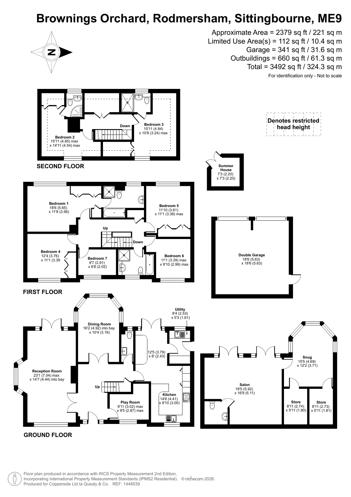 A substantial and highly versatile detached family home, arranged over three floors and forming part of an exclusive development in the sought-after village of Rodmersham. This impressive property offers generous and well-balanced accommodation, ideal for modern family living. The ground floor comprises a dual aspect reception room, a separate dining room, a well-appointed kitchen/breakfast room, utility room, playroom/study, and a convenient WC. To the first floor, the principal bedroom benefits from a dressing area and en suite bathroom, alongside three further double bedrooms, a single bedroom, and a family bathroom. The second floor provides two further double bedrooms, each enjoying their own en suite shower rooms, making it ideal for guests or older children. Externally, the property boasts a double garage and a generous driveway, while to the rear is a secluded garden featuring a large garden room currently utilised as a salon, complete with storage and WC, as well as a charming summer house, creating an ideal space for both relaxation and home working. Rodmersham village offers an attractive village green with a village shop, a popular primary school and public house. There are leisure facilities at Rodmersham Squash and Fitness Club and Rodmersham Cricket Club. Sittingbourne town centre offers high street shopping facilities, a mainline railway station and schools for children of all ages can be found. A wider choice of shopping facilities and schools can be found in Canterbury (about 17 miles), Maidstone about 15 miles, and Ashford about 15 miles.