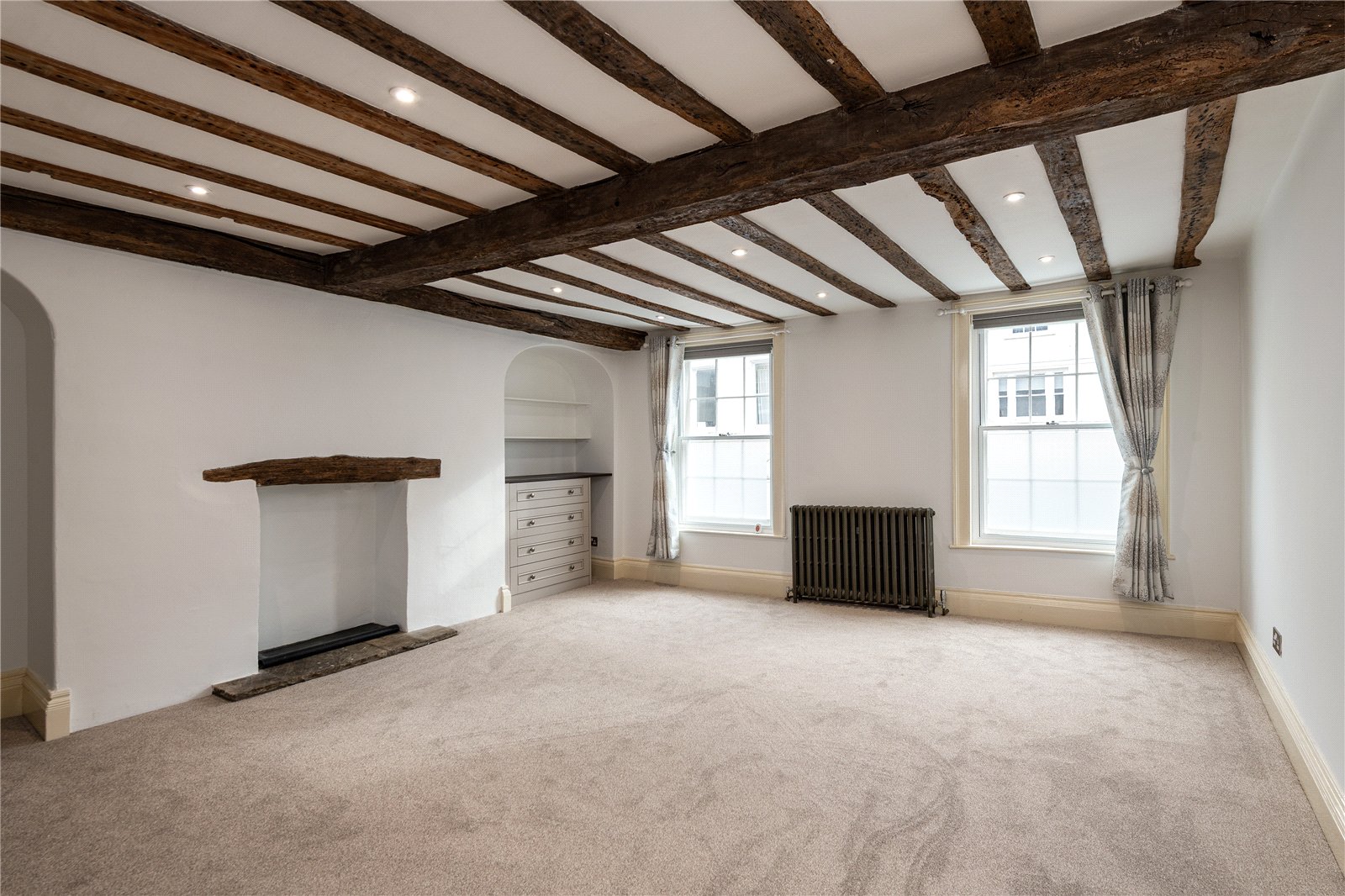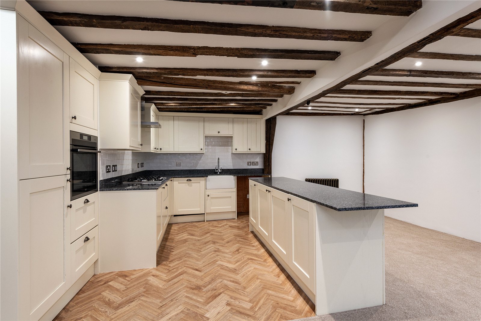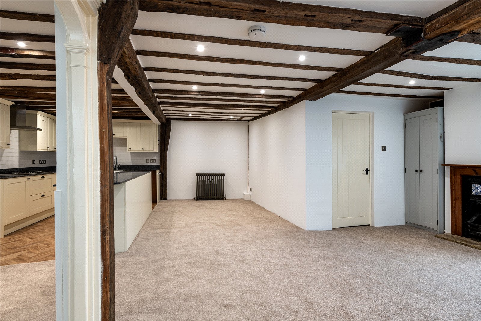 This property comprises of an open plan living/dining area with kitchen that has a useful island space and integrated fridge/freezer and dishwasher, oven & hob and space for a washing machine. There is a large living area that has lots of natural light coming through and overlooks the wonderful High Street of Faversham. There are two good sized double bedrooms, both with built in wardrobe spaces and one with en-suite bathroom. The family bathroom is a large space and has a lovely skylight flooding the room with lots of natural light, the bathroom has bath with shower over.