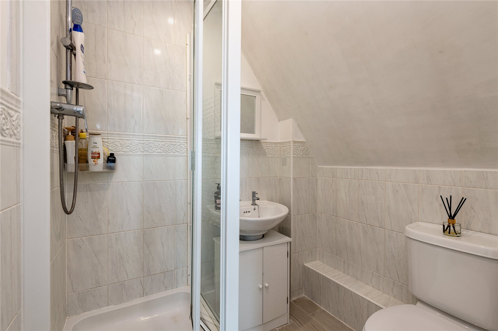 This property benefits from an allocated parking space and is located on the second floor. This property comprises of an entrance hallway with multiple storage areas, two double bedrooms one with an en-suite. There is the modern kitchen with space for washing machine & fridge/freezer and family bathroom and living area.