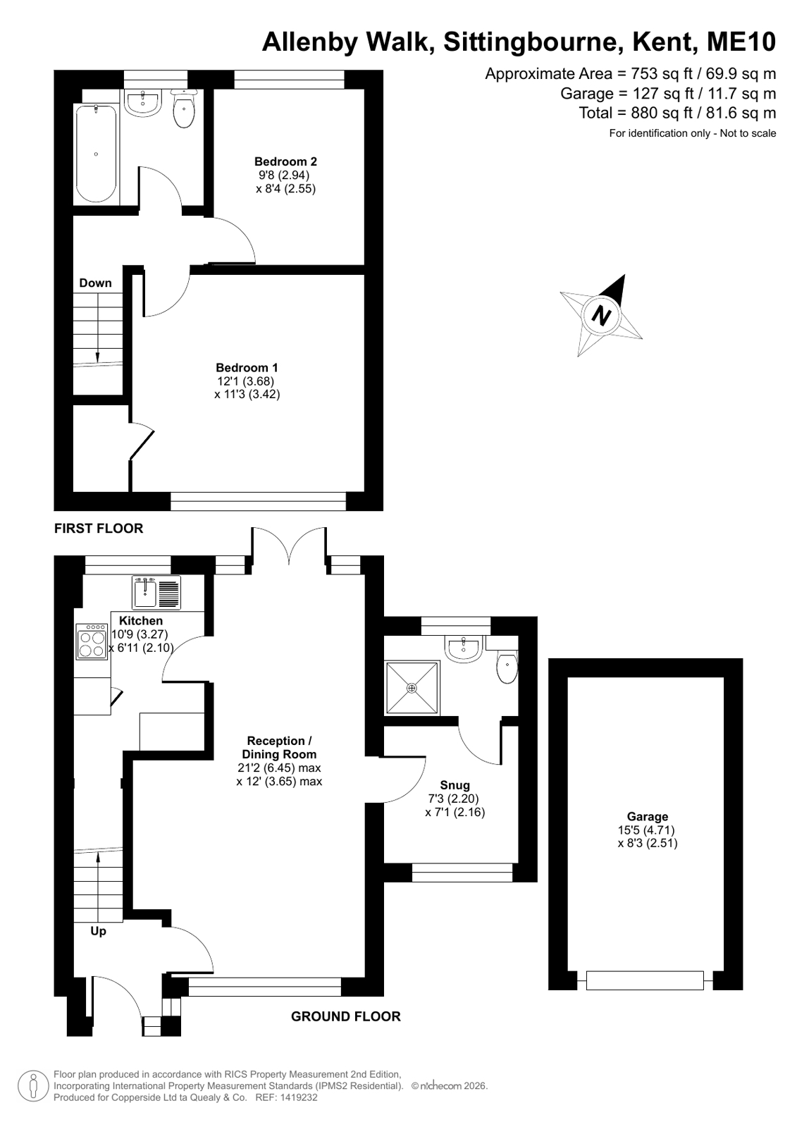 Situated in a convenient residential location in Sittingbourne, this two-bedroom end-of-terrace home presents an excellent opportunity for buyers looking for a renovation project with plenty of potential. The property requires modernisation throughout, making it ideal for those keen to update and improve a home to their own taste, whether as a first purchase or investment. The accommodation offers a practical layout with living space on the ground floor, including a reception and dining area that provides a good footprint for reconfiguration if desired, along with a separate kitchen and additional ground floor space that could be adapted to suit modern living. Upstairs, there are two bedrooms served by a family bathroom, offering comfortable proportions once updated. Externally, the property benefits from a garage, providing valuable storage. Allenby Walk is well placed for local shops, schools and everyday amenities, with Sittingbourne town centre and mainline railway station within easy reach, offering regular services to London. The nearby A2 and M2 road links make this a practical location for commuters, while local green spaces and leisure facilities add to the appeal. This property represents a great opportunity to add value in a well-established part of Sittingbourne.