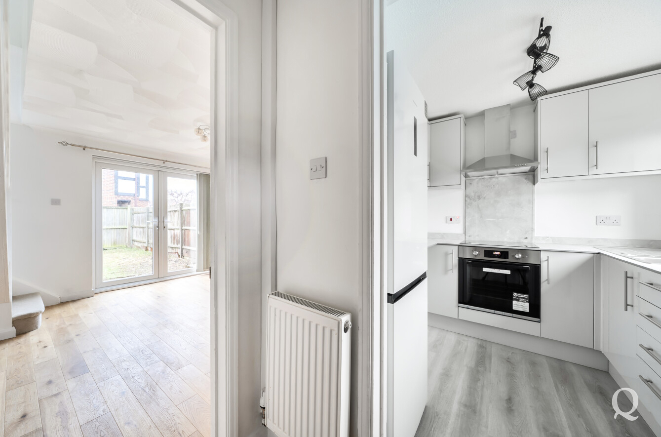 The accommodation comprises an entrance hall leading to the kitchen and a spacious reception room to the rear of the property, which benefits from French doors opening onto the garden, creating a bright and welcoming living space.