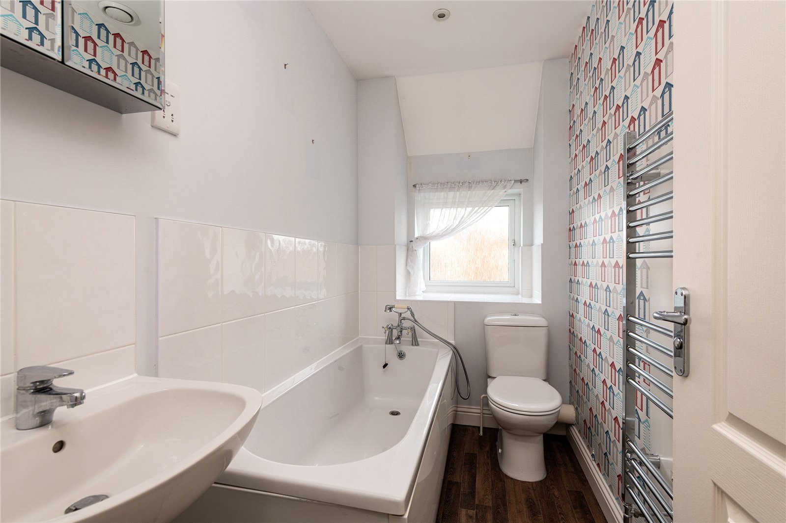 This property comprises of a downstairs W/C and modern kitchen with integrated washing machine, fridge/freezer and dishwasher. You then have the open plan dining/living room and patio doors leading to the low maintenance garden. Upstairs there are two double bedrooms, the master with en-suite and one single bedroom and also the family bathroom.