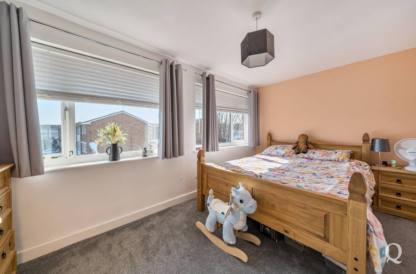 To the first floor, a bright and spacious living room offers a comfortable retreat, complemented by a third bedroom and family bathroom. The upper floor hosts two further well-proportioned bedrooms, including a generous principal bedroom.