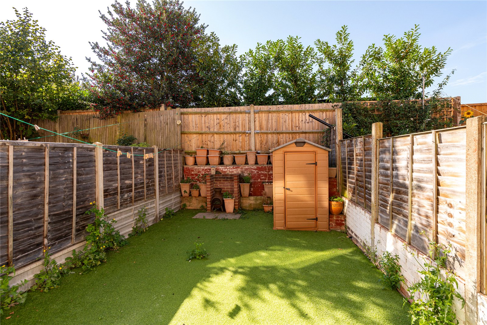 South-facing enclosed rear garden with brick-built BBQ – ideal for entertaining